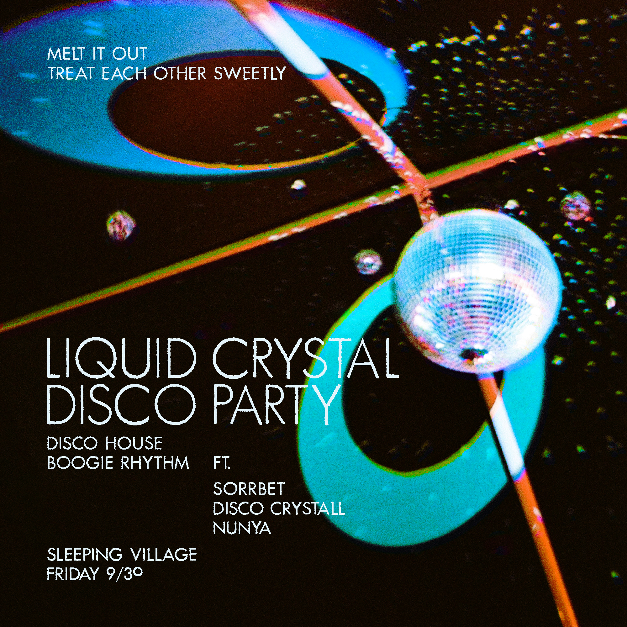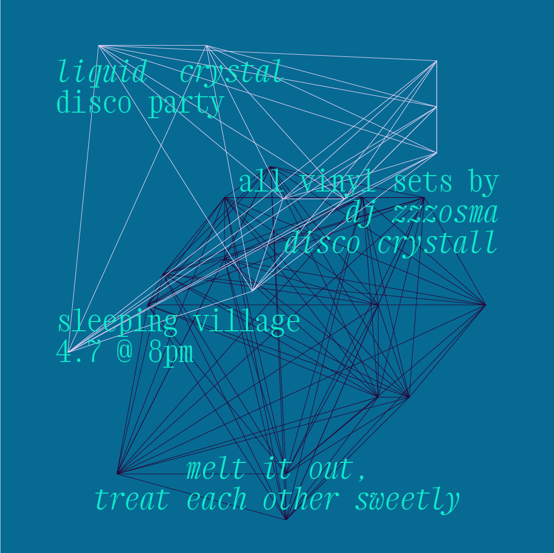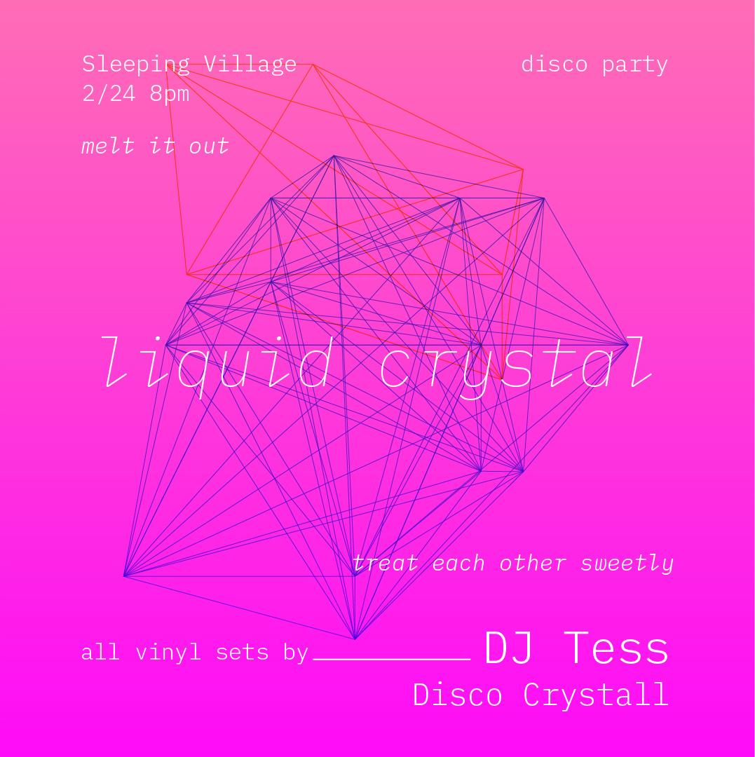you're invited to: LIQUID CRYSTAL DISCO PARTY @ sleeping village, chicago monthly vinyl-DJ dance party thrown by Disco Crystall