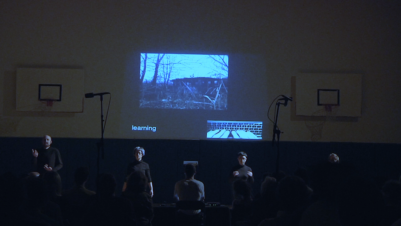 performance (~20'); 5 performers, machine learning computer, 6ch audio, 1ch video projection